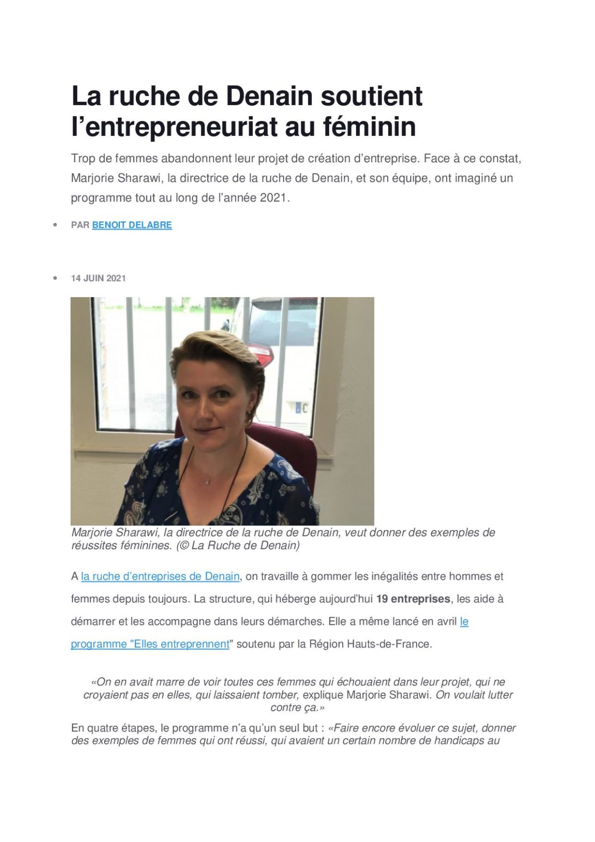 Trop de femmes abandonnent leur projet de création d’entreprise. Face à ce constat, Marjorie SHARAWI la directrice de la ruche de Denain, et son équipe, ont imaginé un programme tout au long de l’année 2021.