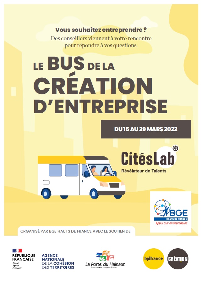 Du 15 au 29 mars prochain, le Bus de la Création animé par notre partenaire la BGE Hauts de France, sillonnera le territoire de la CAPH pour venir à la rencontre de tous ceux qui envisagent de se lancer dans la création d’entreprise. Vous avez un projet ? Consultez le programme !